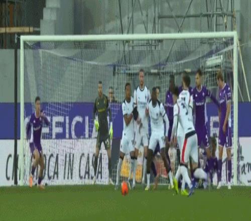 第66分钟,古德蒙德松开出角球,科穆佐头球破门,佛罗伦萨1-0米兰